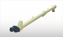 VE垂直螺旋输送机系统包括一个水平螺旋喂料机和一个垂直螺旋输送机。 水平螺旋喂料机可以用于从料仓或料斗中喂料,也可以用于为向上喂料设施进行简单的输送。它包括由一个碳钢制U型或管式槽体(经过了适用表面处理)。任何情况下,出料口处带有一法兰连接在垂直螺旋输送机底端的短管。水平螺旋喂料机的两端各焊接有一个法兰。槽体内部有一旋转螺旋,其两端各有联轴器衬套,与两个末端轴承组件的轴相连。水平螺旋喂料机装配有一个或多个中间吊挂轴承,其数量由喂料机的总体长度决定。另外,它还装配有一驱动单元,以满足使用要求。垂直螺旋输送机由下列部分组成:管式机架(底部带有一进料口,与水平喂料机的出料口相连),顶部的倾斜出料口,焊接在输送机每段管上的末端法兰,截面积固定或可变的旋转螺旋(每端均由联轴器衬套),带有滑动衬套的主轴承组件,由输送机总体高度决定数量的中间吊挂轴承,固结在顶端轴承组件(悬挂螺旋)上的驱动单元和自润滑轴密封单元。 VE型垂直螺旋输送机系统只有中等型号。